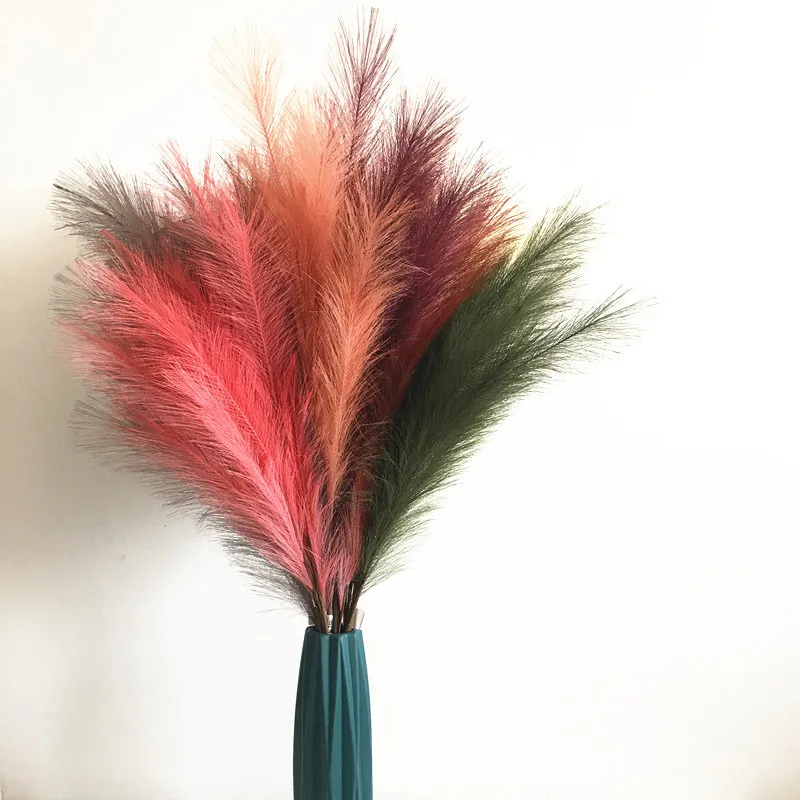 Long Stem Artificial Pampas Grass LARGE PAMPAS: The decorative artificial pampas grass are made from silk cloth, with total length 110cm/43inches, the feathers length is about 63cm/24inches; the stem is made from iron wire wrapped in black paper, which can be cut to size by a pair of garden shears. NO SHEDDING: Unlike dried pampas grass, flowers or plants, the faux pampas grass won't be having the problem of shedding or airing before use, these are made extra fluffy and easy to care for. BOHO DÉCOR: Large pampas grass artificial is ideal with floor vase or white grey vase for your home space arrangements, pampus grass decor, aesthetic style for living room or boho bedroom, they add extra beautiful touch to your home decorations. EXTRA FLUFFY: Pampas grass artificial large resembles dry pampas grass, fluffy and elegant, perfect for home room decor, can also be used in bundle with bunny tails grass big or small, palm spears leaves, ostrich feathers, other white pink or natural artificial flowers or dried flowers and plants. HOME DÉCOR: These tall artificial pampass grass are perfect for Christmas party decorations or wedding decorations as decorative artificial plants and flowers, used for wedding bouquet with decorative twigs reed and decorative artificial flora, aethestic style decorations.