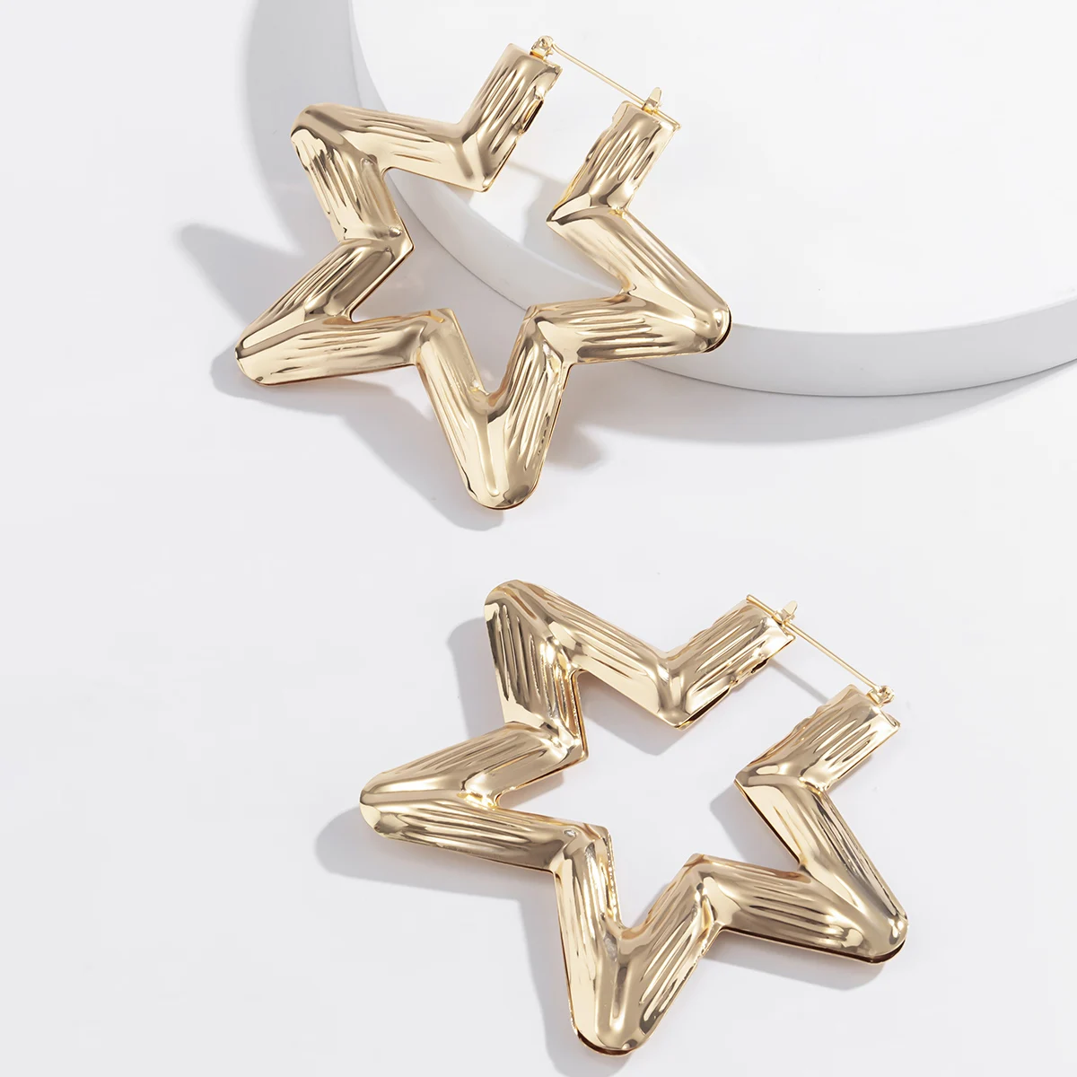 KunJoe 2021 New Punk Gold Color Big Star Hoop Earrings for Women Exaggerated Metal Geometric Earrings For Women Party Jewelry Item Style: Hoop Earrings Condition: 100% Brand New Material: Iron Alloy Quantity: 1 Pair Hoop Earrings ( don't include any other item here ) Color: Gold Color Silver Color Size: As Picture Size Net Weight: 21g Package: PP&P Origin: China
