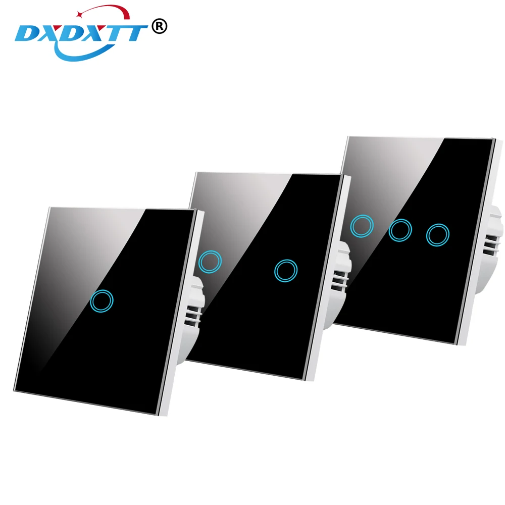 Feature: 1,1/2/3 Gang touch switch 220v wall Light Switch,EU Standard smart home switch2,Toughened crystal glass panel design, no fading, looks elegant and stylish.3,Super sensitivity-Just need touch it light, Waterproof and Resistance Scratch. Protection Against Electric Shock.4, Popular Colors are available: Black, White, Golden,5,With blue LED indicator, very distinguished, more humanization design,The button will glow at night, making it easier to find.6,New imported IC processor for nice sensitivity and stable performance7,the base is made of high temperature resistant PC material, making the switch durable and longer life.8,Single live wire control, easy to install, replace the old switch directly.9,Touch control ensures longer service life than traditional switch.10,Protection of over-current, anti-interference,Certification: CE, ROHS, FCC,EU. 11,Easy to clean, panel glass resists deformation and fading.12, Elegant look, Suited greatly with many modern decor styles. It can be applied to drawing room, bedroom, corridor, kitchen, bathroom, Office and so on.