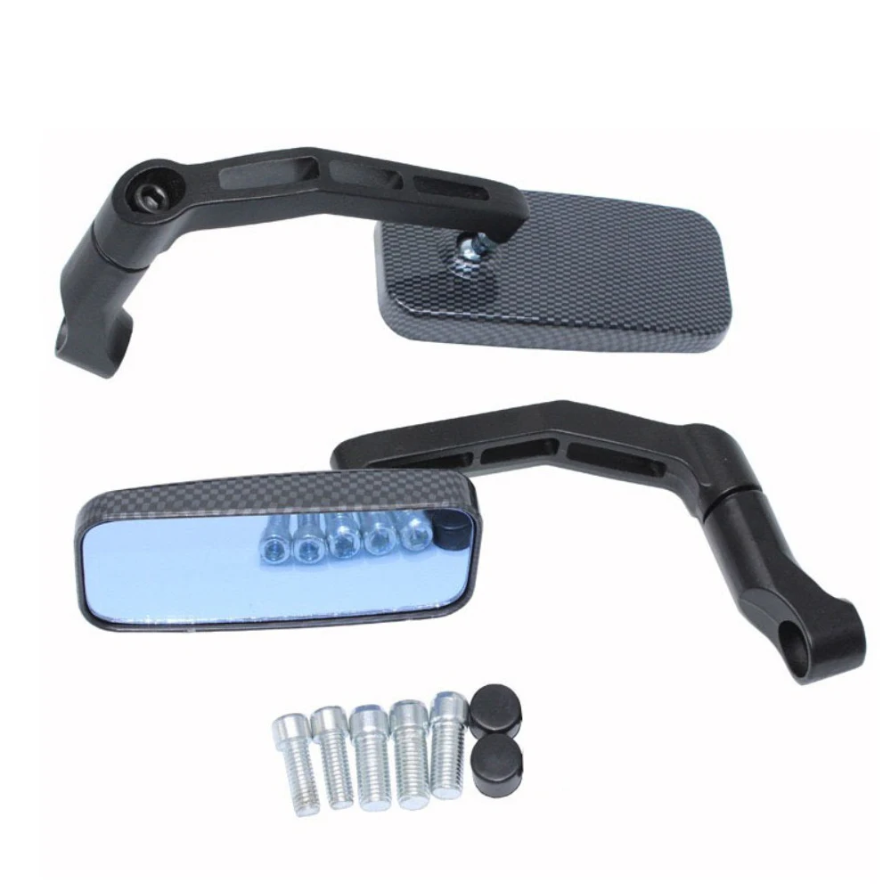 Universal 8mm 10mm Motorcycle Handle Bar End Rear Side View Mirrors Aluminum Rectangle Blind Spot Blue Rearview Side Mirror