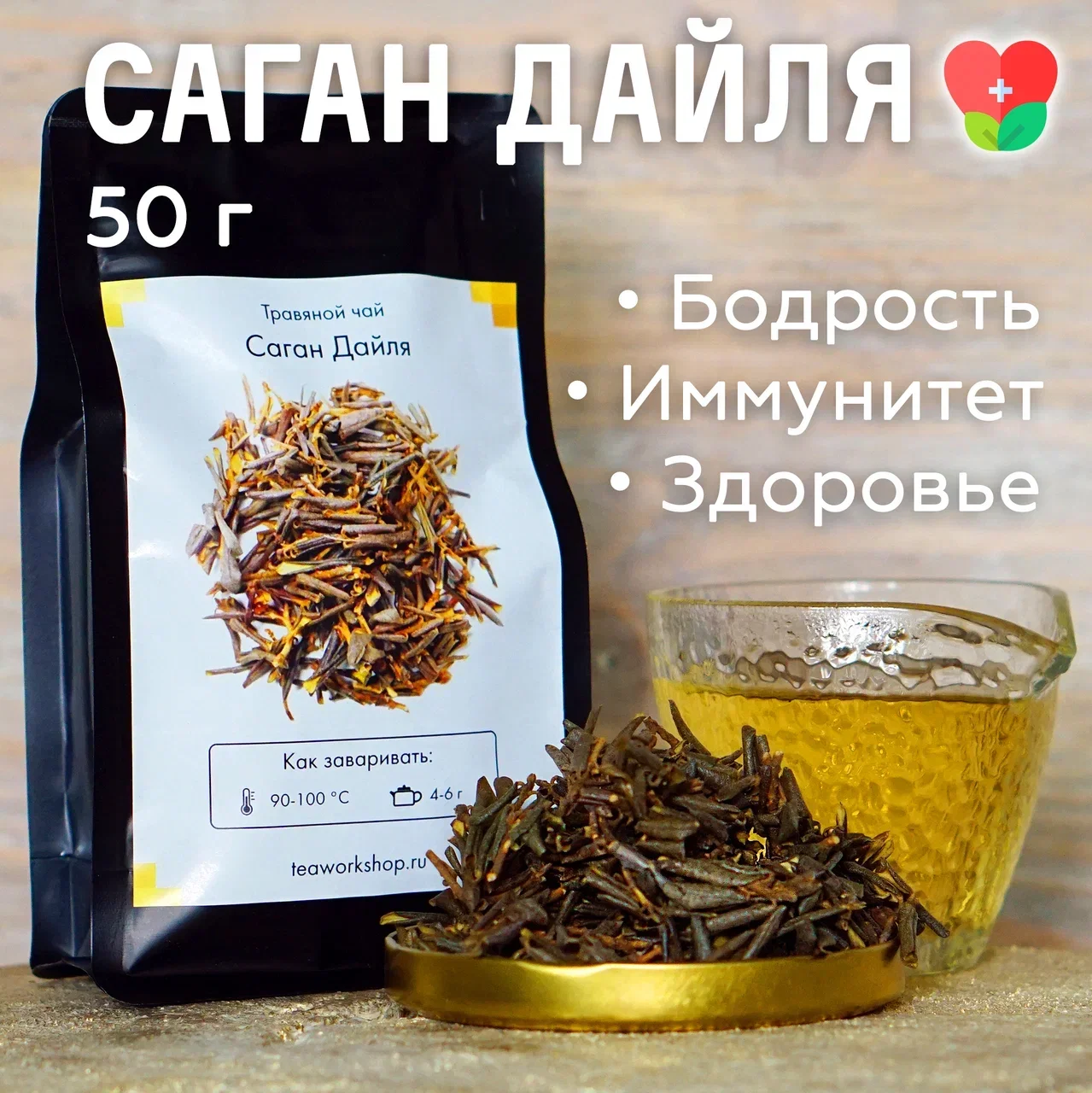 Rhododendrone Adams or Sagan Dyle, or the white wing is a plant from the family of Heather, growing in the Far East. It is a low evergreen bush with small leaves and brushes of pale pink flowers. Sagan Dyle effect: beneficial effect on the body and consciousness. Drink from Sagan Dyle is a powerful energy source, stabilizing the work of almost all the main systems of the body, improving sleep, giving tranquility and strength. For brewing collect the upper parts of the shoots with leaves 3-5 cm long. They form a transparent golden-greenish infusion with an intense aroma. Sagan Dyle's drink has a pronounced toning effect. Sagan Dyla is ideal to wake up in the morning or prepare for a heavy load. Has a light, coniferous aroma with floral notes. How to brew Sagan Diel: water temperature 90-100c, add 4-6g of tea. Finish!