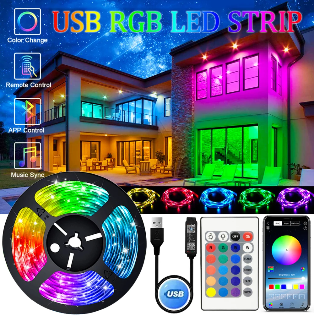 LED Strip Lights USB Bluetooth 5V RGB LED Lights Flexible LED Lamp Tape Ribbon RGB TV Desktop Screen BackLight Diode Tape Luces