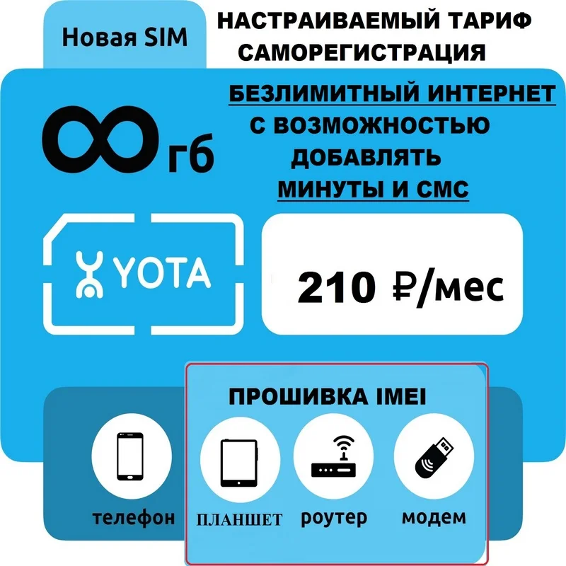 Сим карта YOTA с безлимитным интернетом и бесплатной раздачей в смартфон,